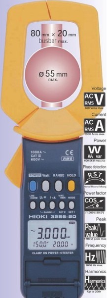 日本日置鉗式功率計HIOKI 3286-20的功能強大!操作簡便! 鉗式功率計HIOKI 3286-20是具有真有效值鉗形功率計,鉗式功率計HIOKI 3286-20最高可測量1000安培的電流,鉗式功率計HIOKI 3286-20的測量鉗口直徑為55mm。鉗式功率計HIOKI 3286-20可測量單相功率和3相功率。